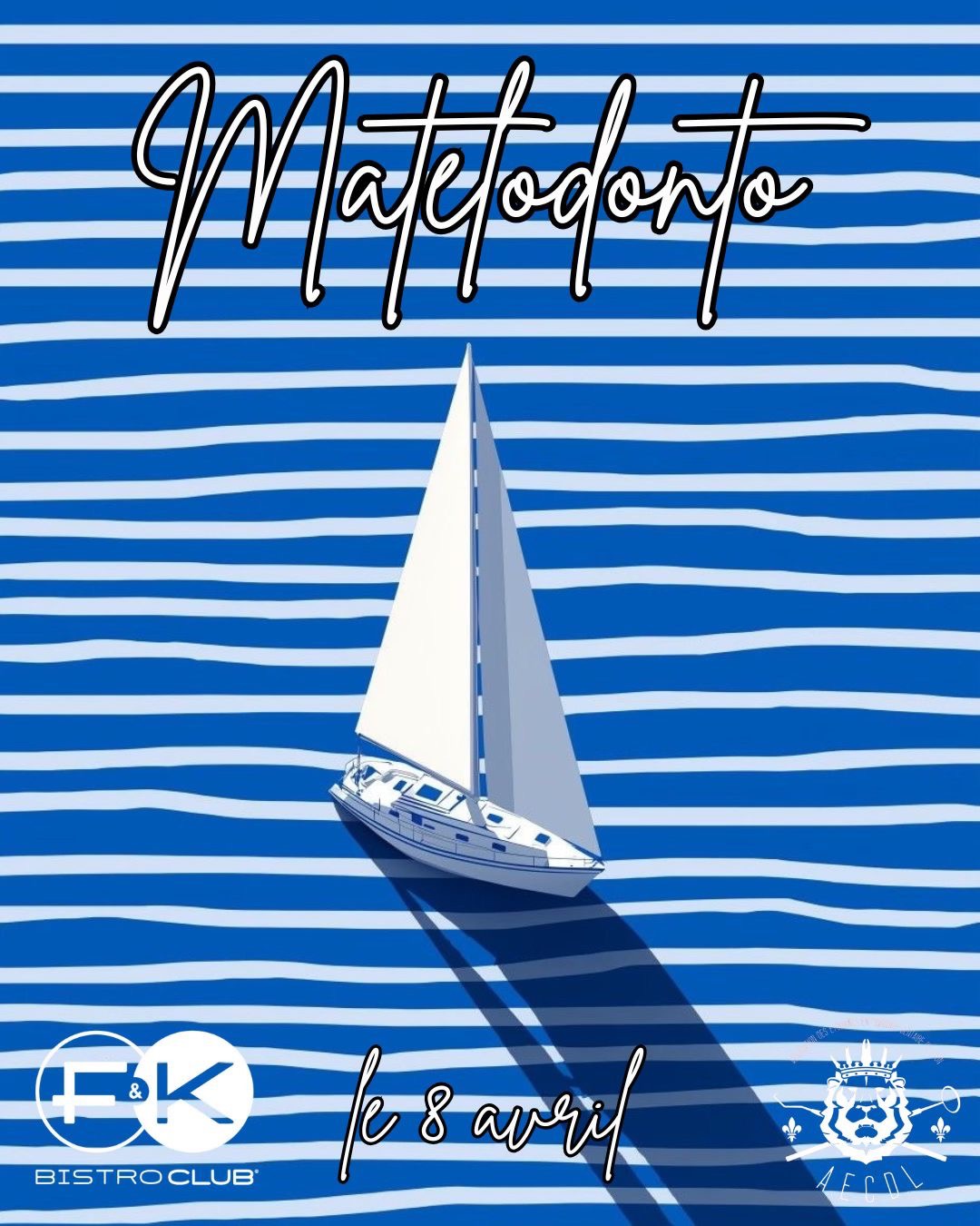 Le retour du soleil a ouvert votre appétit de terrasse , d’alcool , de musique et de fête . Alors le F&K a pensé à vous, rien de mieux pour combiner tout ça que de se retrouver tous ensemble . Vous pourrez amarrer votre bateau devant le f&k et mettre le pied sur le quai vêtu de votre plus belle marinière pour notre soirée MATELODONTO